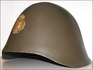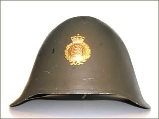 Danish reserve police force helmet, first used from 1942 until 1944. These helmets were called the Amalienborg Helmet, as they were used by the police units that protected the Amalienborg Palace. These helmets were used with a front badge for the police force, but later the front holes for the badges were plugged up.