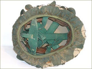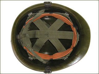 A bring back from the 1990 Gulf War, this helmet features a rubber rim to help hold a camo cover in place. These helmets, as with the later examples were made in South Korea. It is not clear why the letter "M" is scratched on the front - was it done in the field or by the American veteran? | ||||||||||||