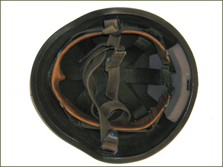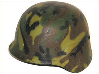 Using a design similar to the American PASGT, this helmet features a camouflagued pattern that was stenciled on the helmet.