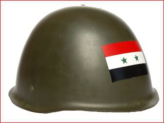A Polish made Wz-67 helmet, reissued to the Syrians. These helmets are still in use by the Syrian military today, often with the Syrian flag painted on the front.
